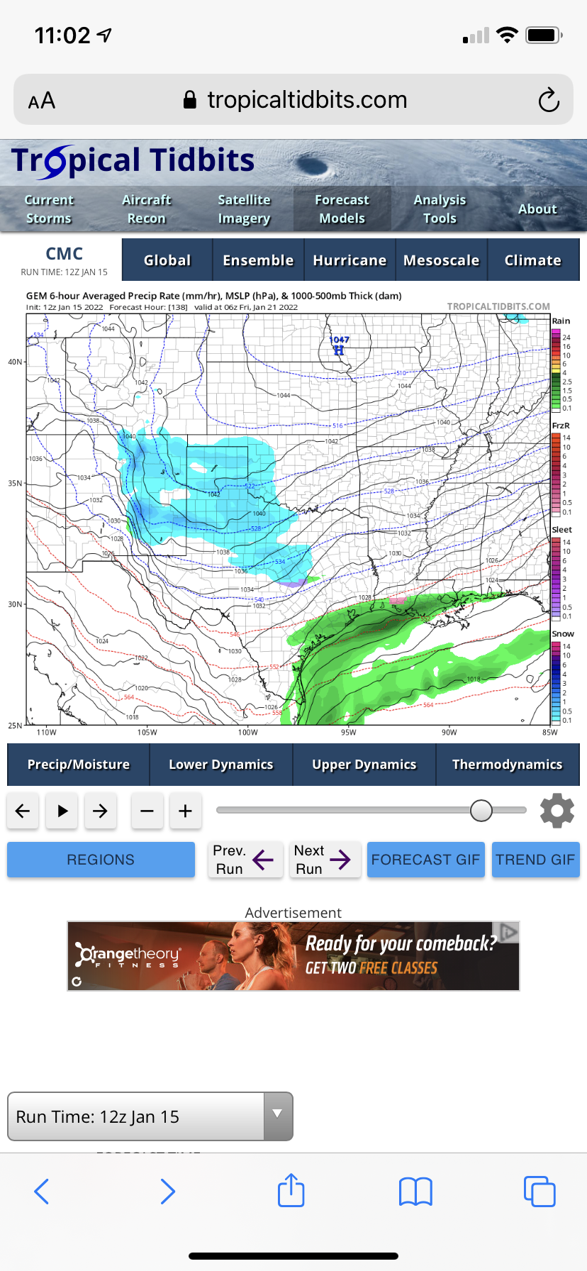 It shows some light snow accumulations out in the Hill Country. Kinda where the GFS had been showing it a few runs ago.Stratton20 wrote: ↑Sat Jan 15, 2022 1:49 am CPV17 what does it show? For some reason its not showing the 00z run for me