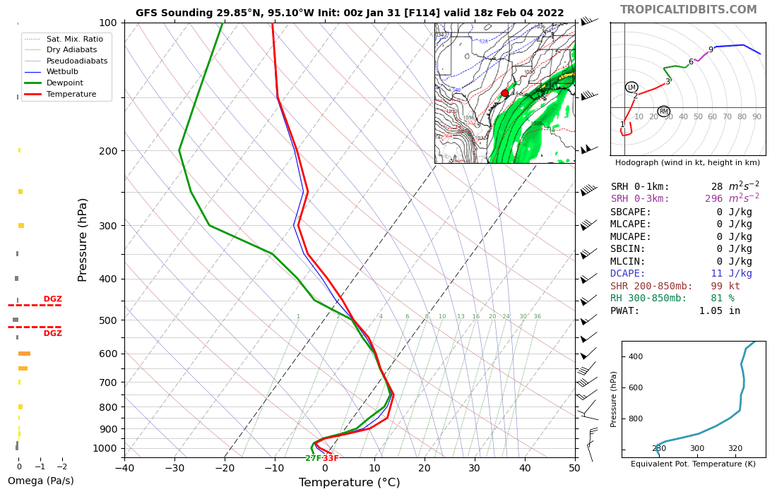 Cold air layer will remain shallow.If any precip falls it will likely be sleet/freezing raintxsnowmaker wrote: ↑Sun Jan 30, 2022 11:05 pm Oz GFS brings Houston back into snow depth coverage later in the day on Friday. Anyone know whether the profile would support all snow?
