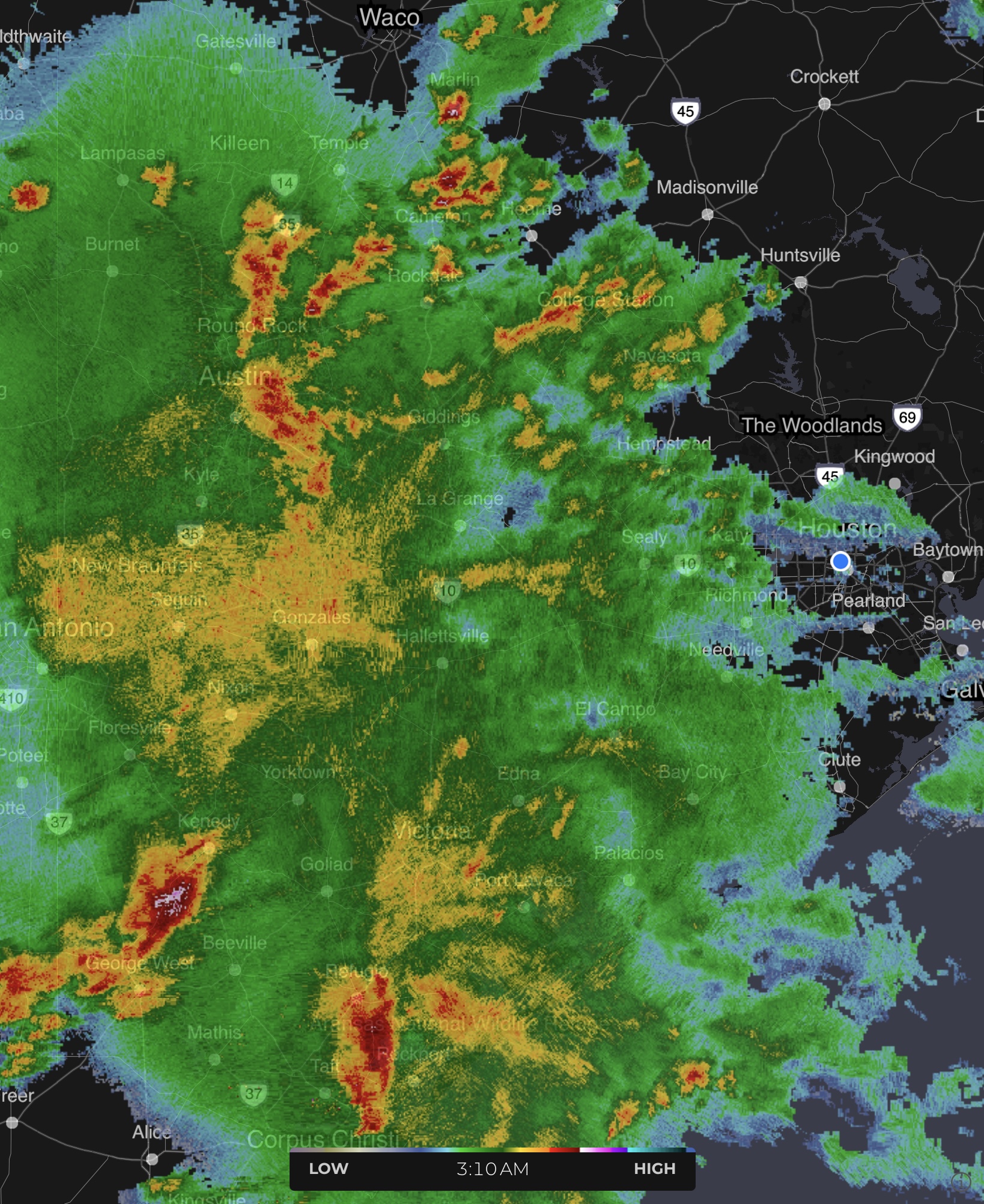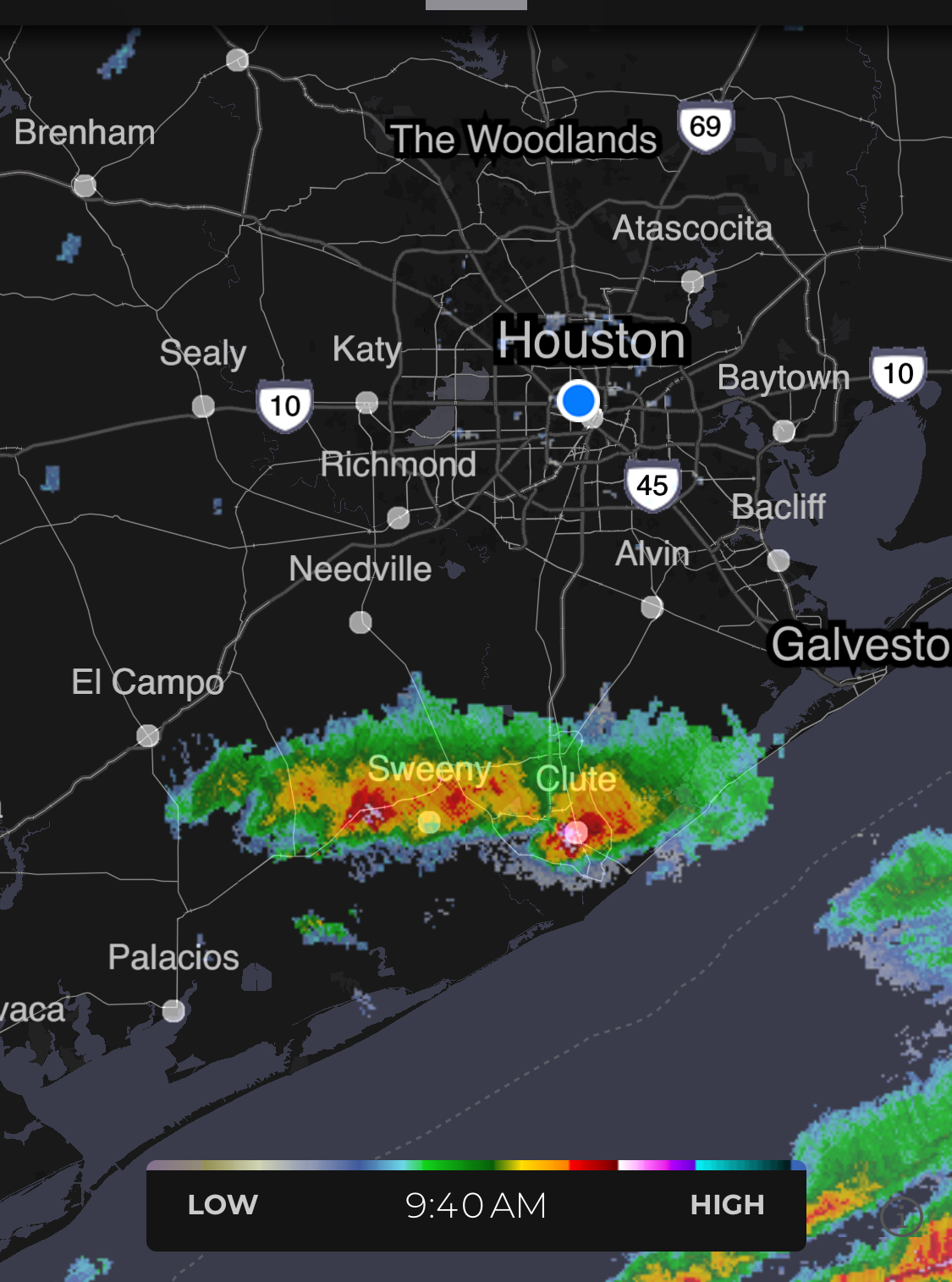 The orange built up once the leading edge passed League City. Barely got any rain at my house, I kid you not.