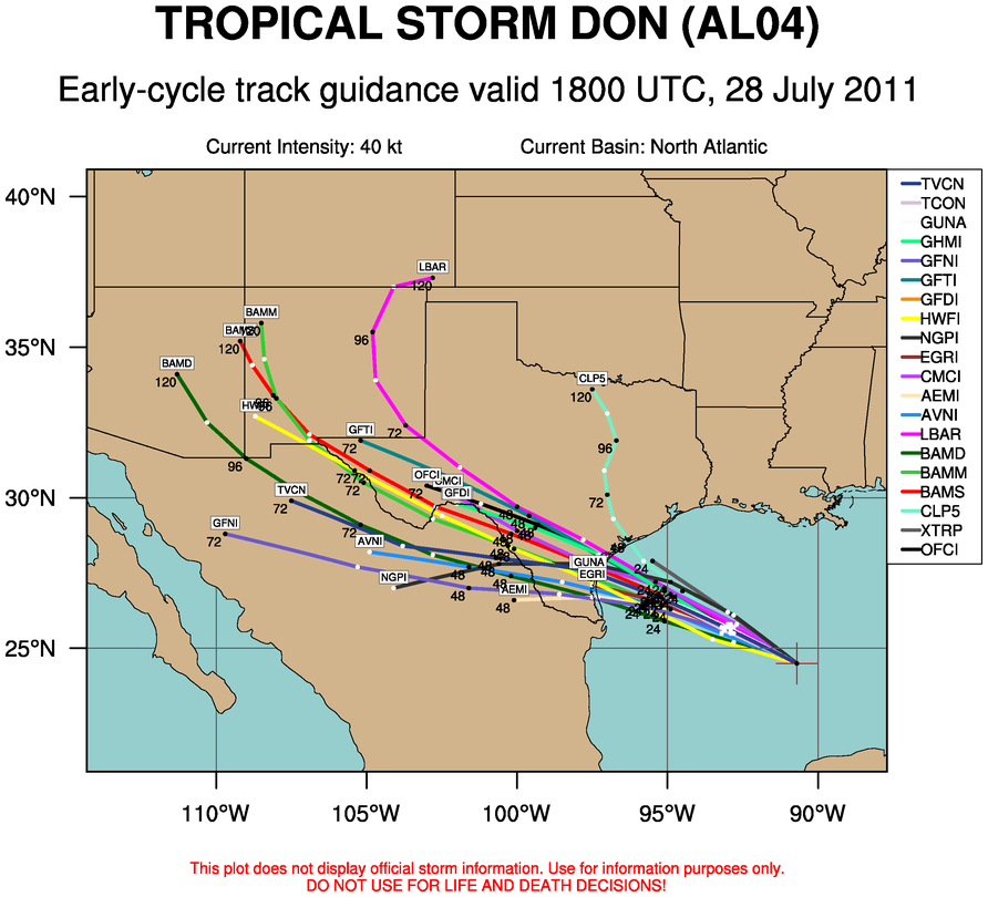 I would guess the best we could hope for this far up the coast is for Don to come in as far north as it realistically can (probably Matagorda) and then have its rain shield expand when it hits the coast. But I think even that will take some luck.