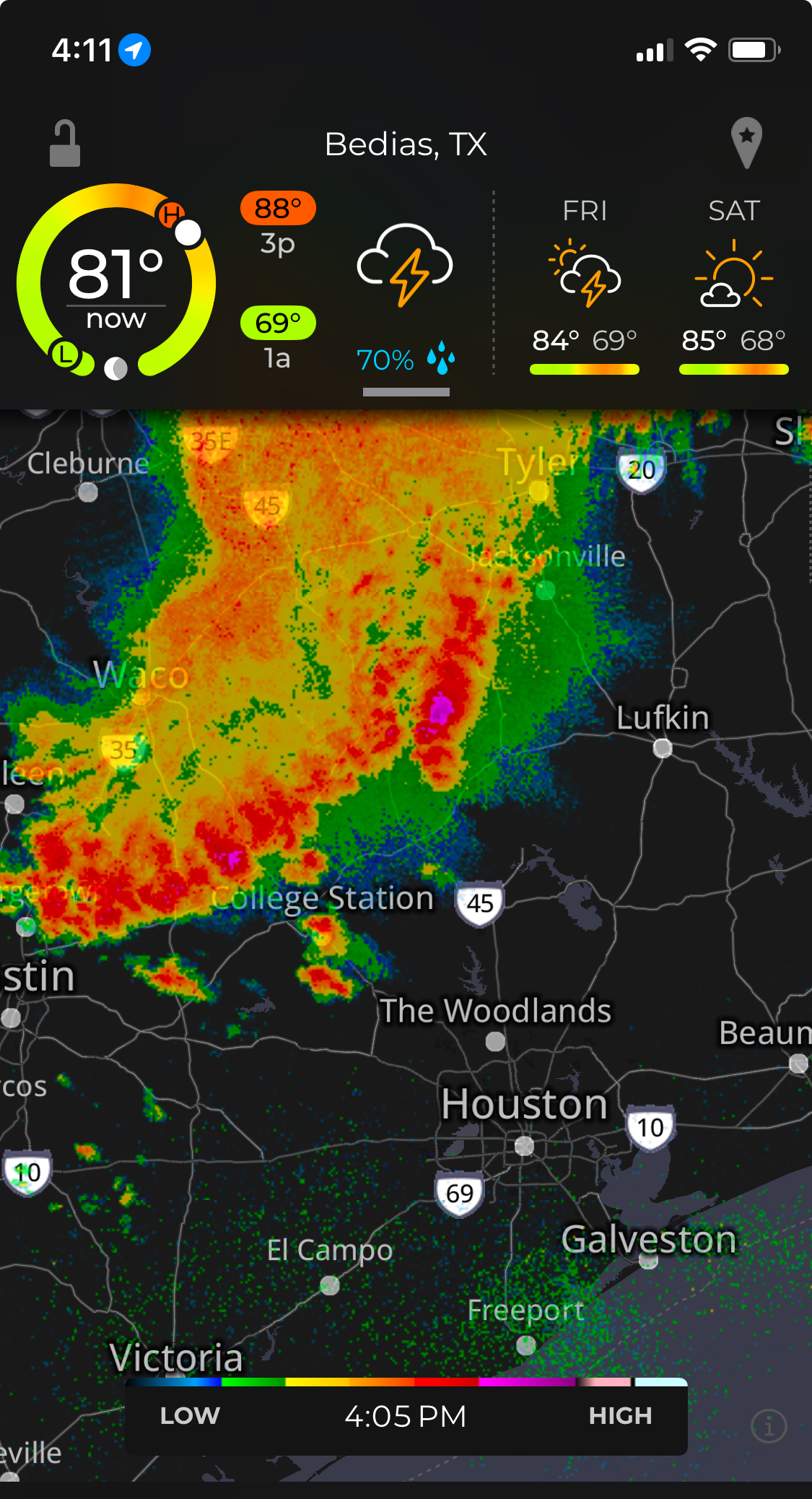 That timing is slow. Rolling through Hearne now.