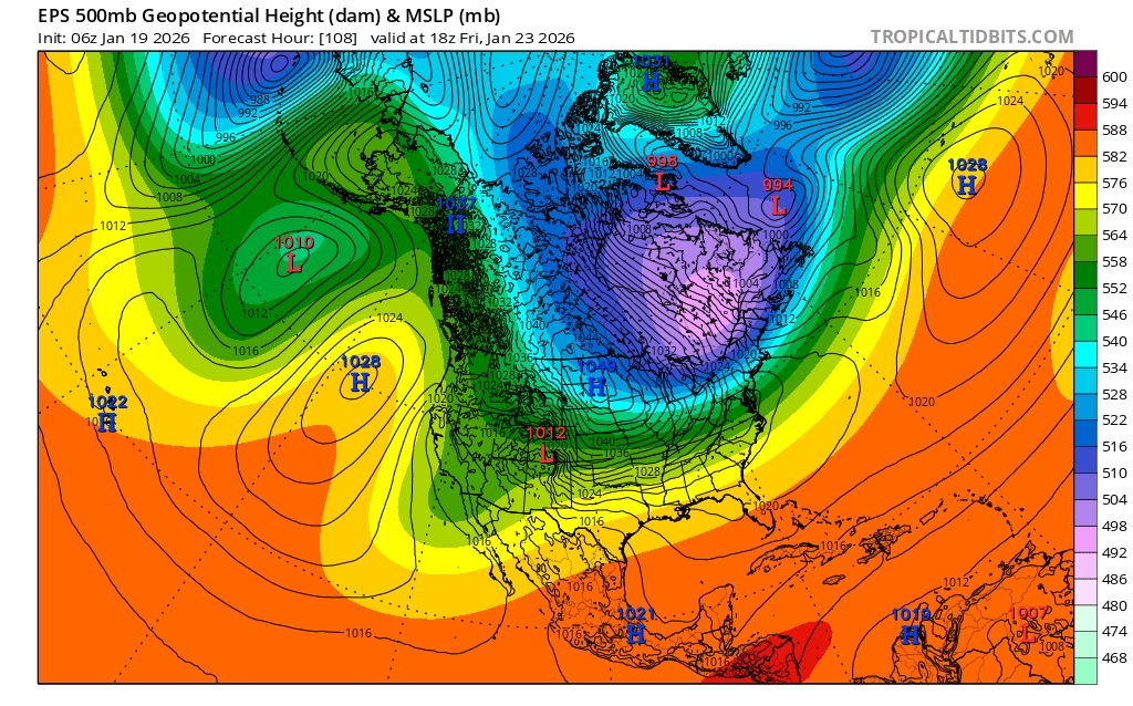 Stratton20 wrote: Mon Jan 19, 2026 12:58 pm Arctic air probably arrives friday night as it tends to travel faster south than predicted, precipitation should start early saturday and continue through early monday