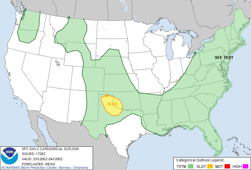 ...THERE IS A SLGT RISK OF SVR TSTMS OVER PORTIONS OF THE EASTERN