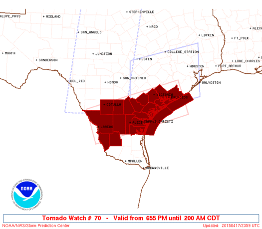 Tornado Watch issued for portions of South Central/SE Texas until 2:00AM CDT. Jackson and Matagorda Counties are included in the Watch.