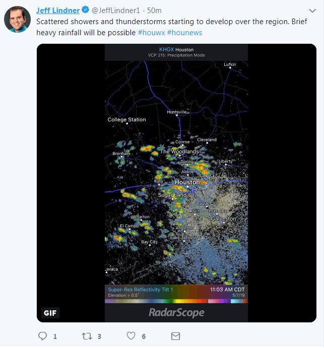 Heavy rainfall in Brazoria and Ft Bend Counties showing very slow movement. Also a Flood Warning issued for the cluster near Kingwood Area.