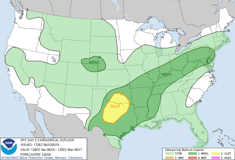 The afternoon Updated Storm Prediction Center Day 2 Outlook places all of SE Texas in a Marginal Risk for severe storms for Father's Day.