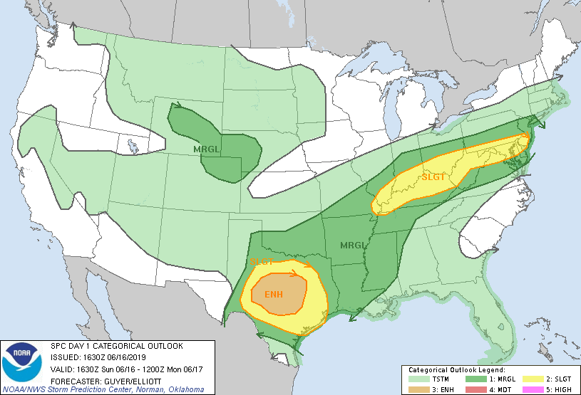 enhanced thunderstorm outlooks issued 06/16 by SPC