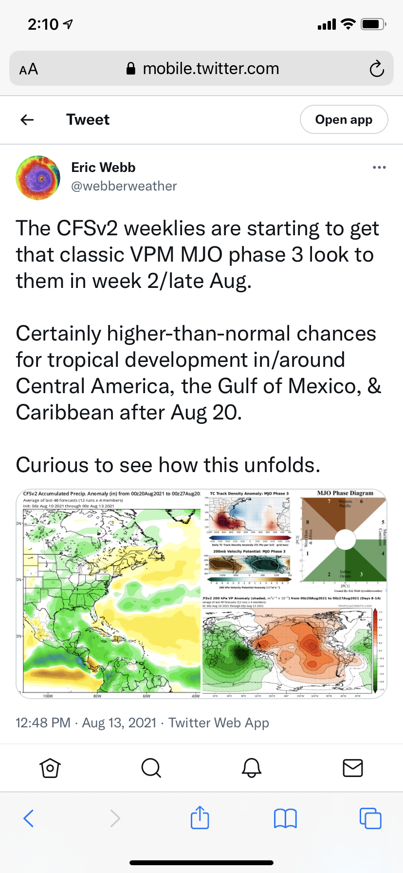 CPV17 I did see the CPC is “calling for” above normal precipitation around August 20th and beyond so maybe we could see something in the W. GOM or W.Caribbean