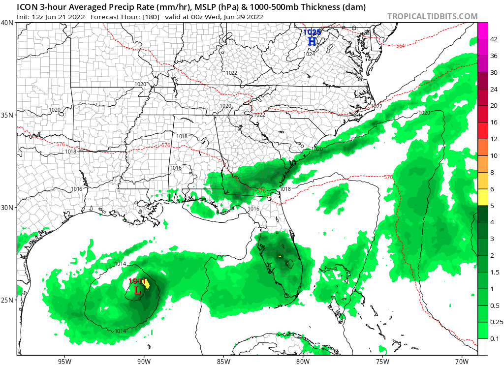 GFS looks pretty good even without showing the surface low it has a decent amount of moisture with the frontal boundary next week.Stratton20 wrote: ↑Tue Jun 21, 2022 11:52 am GFS doesnt really show much of anything next week with the surface low, we will see what the CMC and Euro have to say though