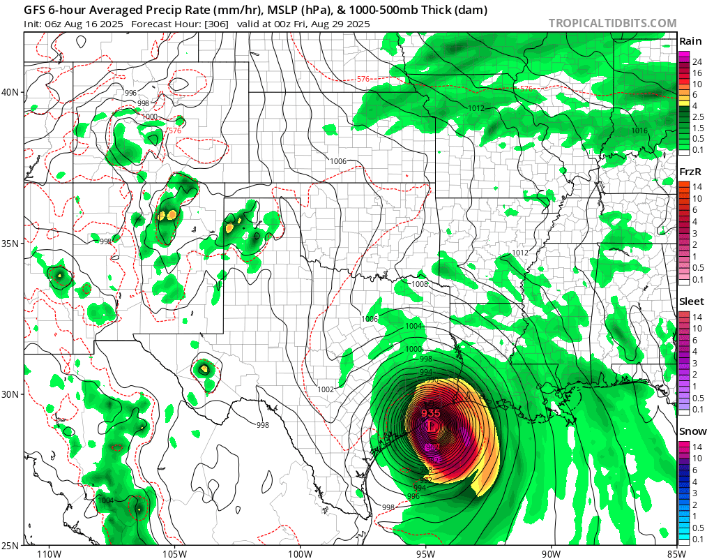 Maybe a little North of Brownsville creeper?Stratton20 wrote: ↑Wed Aug 13, 2025 3:25 pm Wouldn’t be shocked to see our gulf disturbance develop, reconnaissance flight potentially tommorow and friday, it already has a skeleton in place for development, sustained convection over land and a pretty decent mid level spin, I dont trust ths one at all