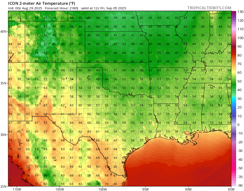 You could get banned for posts like that while we're stuck here in the oven.srainhoutx wrote: ↑Wed Aug 27, 2025 6:39 pm I had a low this morning of 48. The high today was 72 and it's currently 63 at the house.