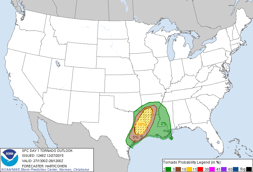 Spc has a 10% hatched area for a large portion of SE and E Texas. Models slow the progression of the storms until late tomorrow which would only amplify the chances. Overall tomorrow could be a dangerous day.