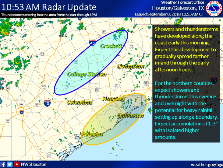 NWS has issued a Flash Flood Watch for the NW 1/3rd of SE TX from 700pm this evening until 700am Sunday. This watch includes the following counties: Houston, Grimes, Madison, Brazos, Burleson, and Washington.
