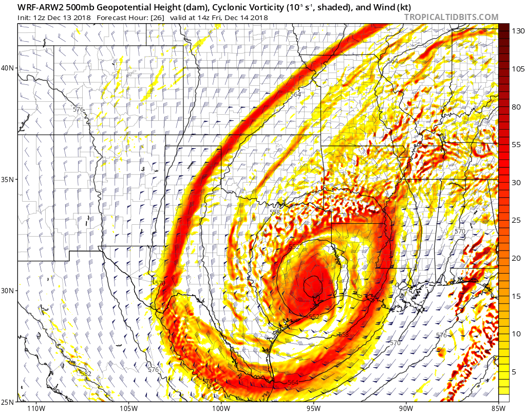 The central Texas upper low very evident in IR imagery will be
