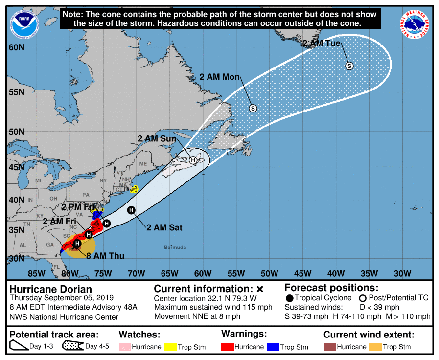 Thursday morning Hurricane Dorian Update from Jeff: