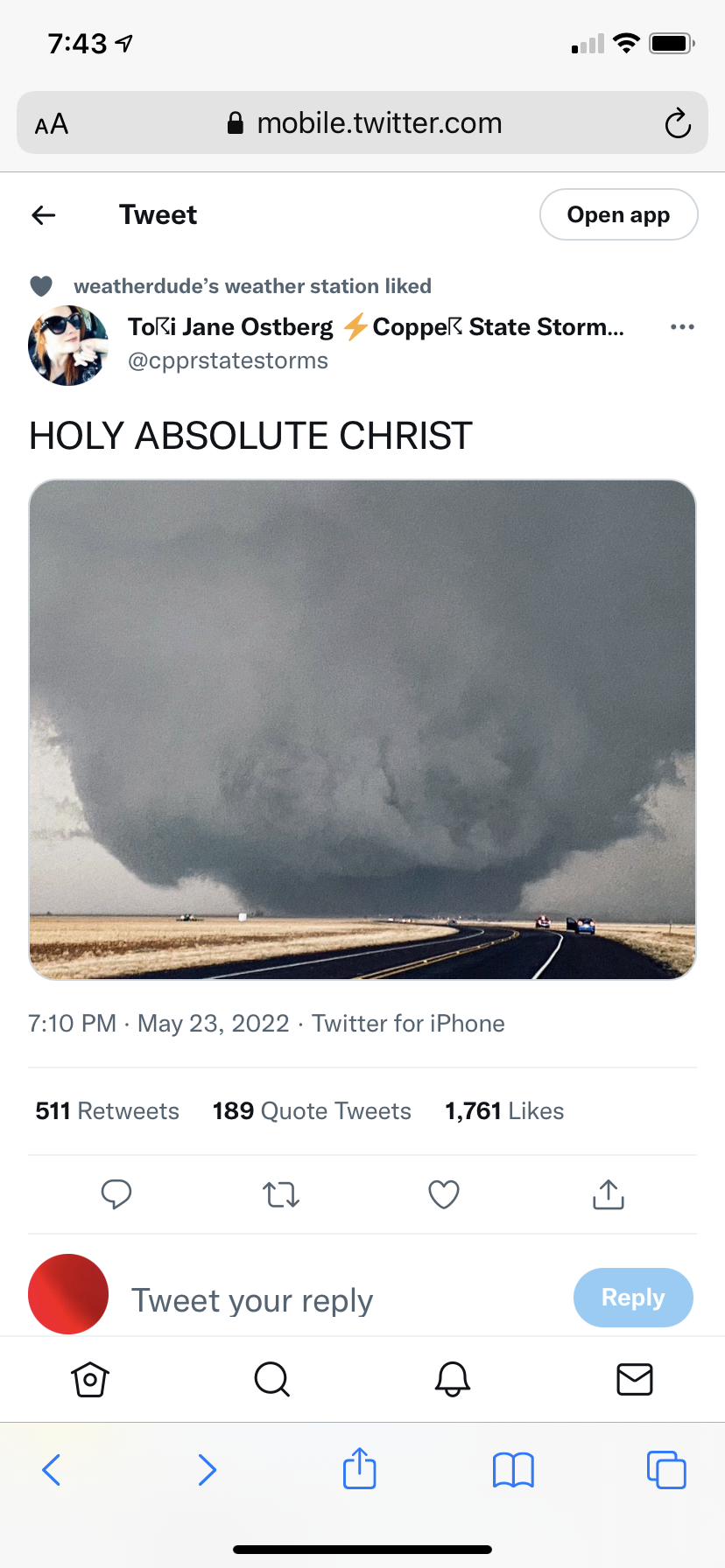 Tornado chasers out near Morton in West Texas, wow, that is absolutely terrifying ☠️😨😱😱