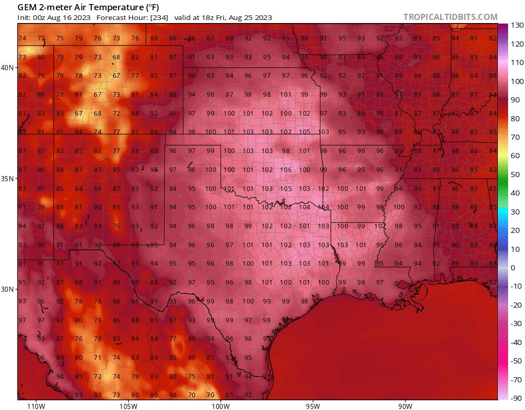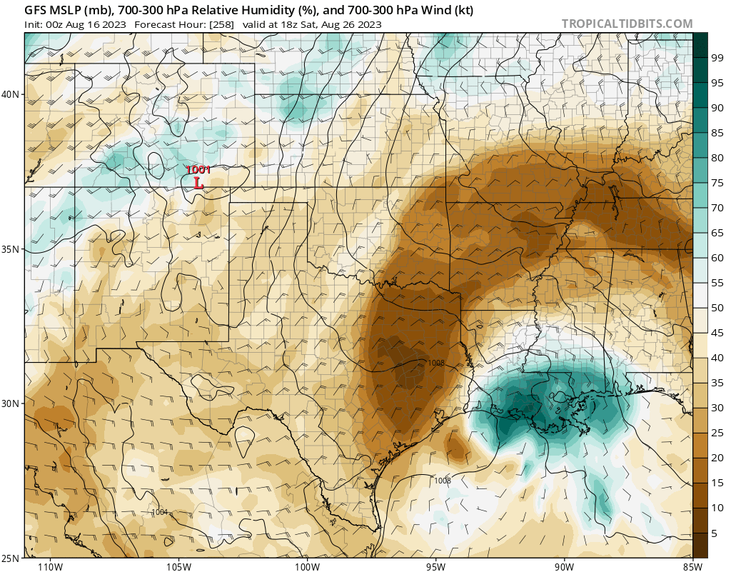 869MB wrote: Wed Aug 16, 2023 1:16 am Unfortunately, the mid to long range 00Z GFS run continues with the idea that our hottest stretch of the year will be the last week or so of August. It depicts the heat ridge settling in over the Central & Southern Plains while circulating very dry air into our region from the northeast. Let the GFS tell it (with the CMC not too far behind), the worst is yet to come for us…