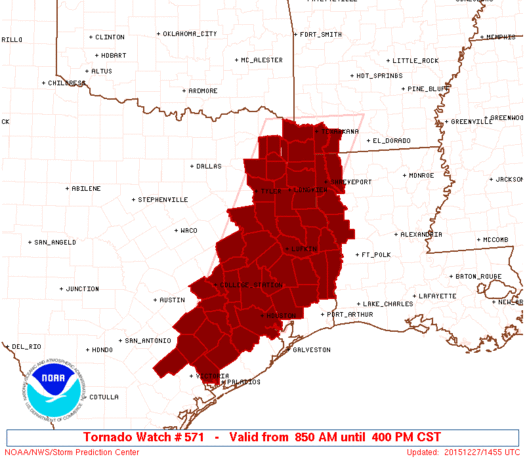 SPC has issued a Tornado Watch for a large portion of SE TX until 400pm. All counties included except the coastal counties.