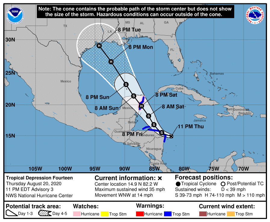 To see Tropical Depression 14 forecasted as a hurricane in 5 days is a bit concerning. I would not be surprised if it is Category 2 or 3 hurricane.
