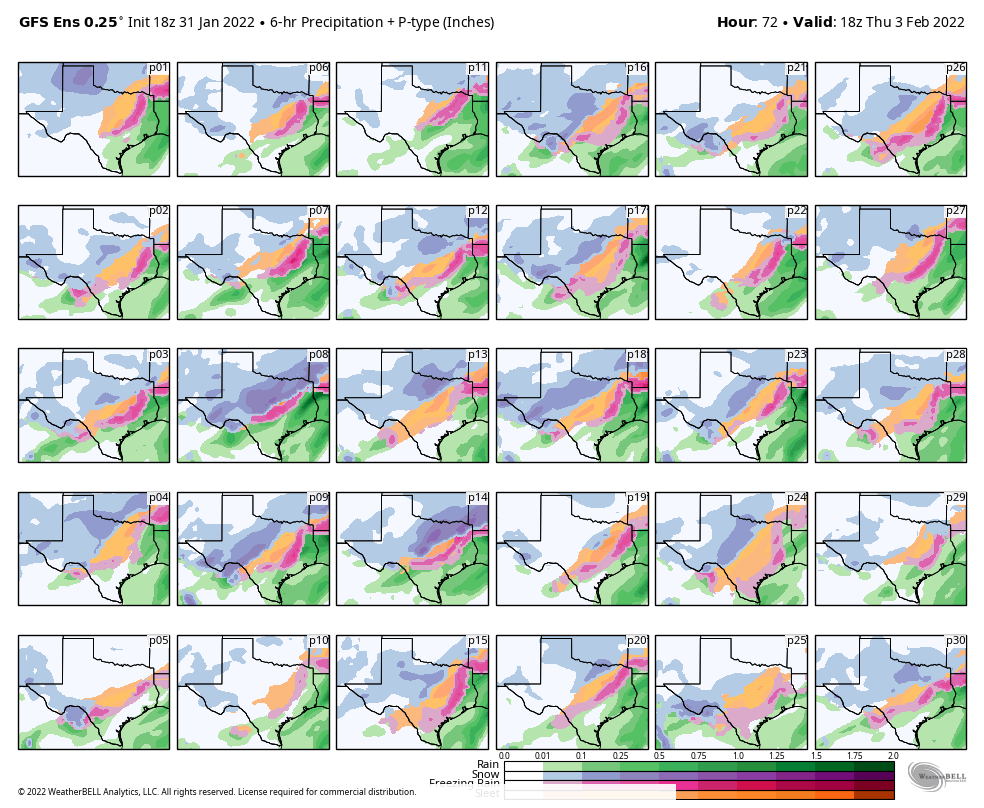 Given that the GFS version does very well with these colossal Arctic intrusions, I follow its advice in establishing the southern rim of an ice event along the northern rim of the suburbs of San Antonio and Houston in Texas.