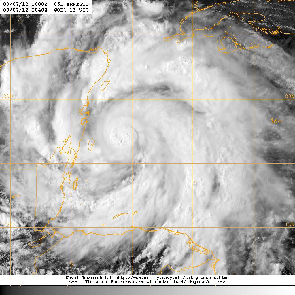 HURRICANE ERNESTO WILL CROSS THE EAST COAST OF THE YUCATAN