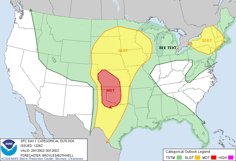 ...THERE IS A MDT RISK OF SVR TSTMS ACROSS PARTS OF THE ERN TX