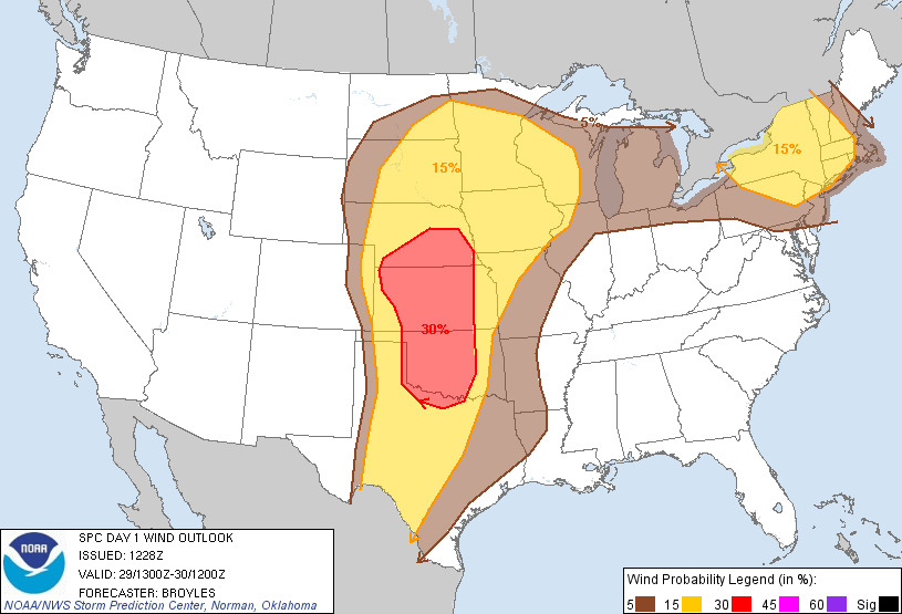 ...THERE IS A SLGT RISK OF SVR TSTMS ACROSS PARTS OF THE ERN GREAT