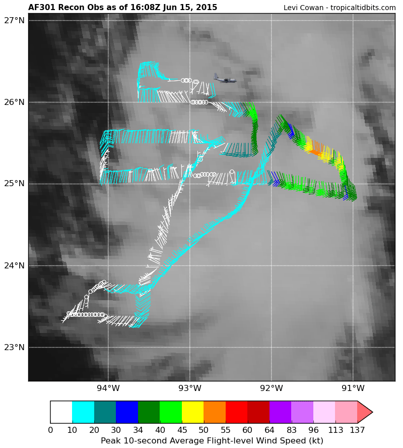 RECON headed back W for another pass. Looks like they are attempting to close of a center near the strong convection.