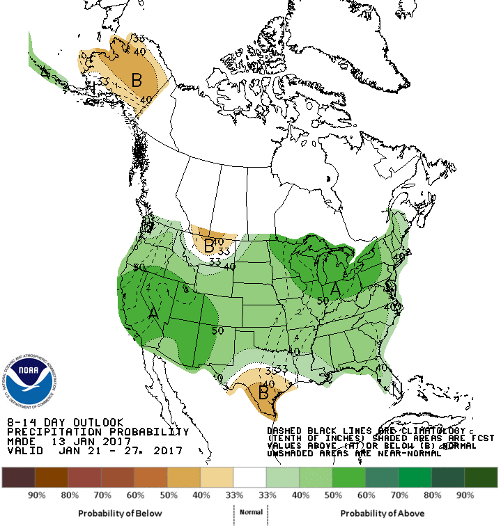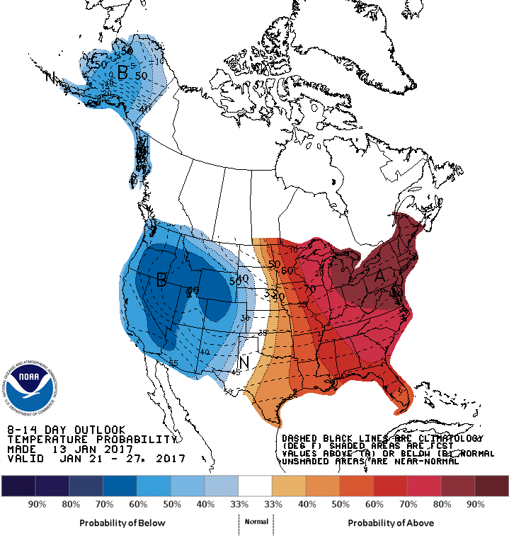 The Friday afternoon updated Climate Prediction Center Day 8 to 14 and the Week 3 to 4 Outlook suggests changes are brewing in the Extended Range. Enjoy the January 'Thaw' while it lasts.