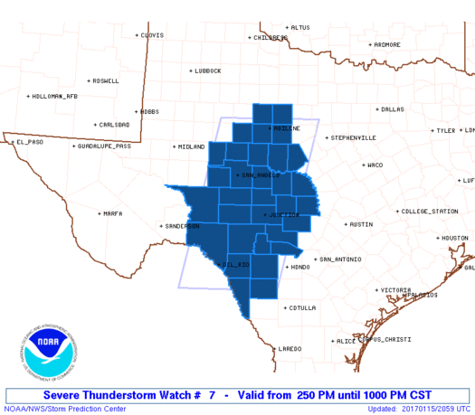 Severe Thunderstorm Watch issued for portions of the Edwards Plateau/Pecos/Concho Valley Regions of West Central Texas.