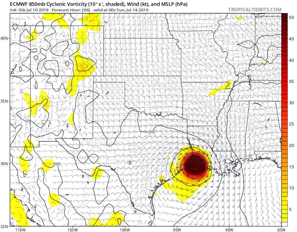 Wow, UKMET was quite the run. ECMWF is showing not nearly as deep of a trough over the northeast compared to the last couple of runs. Also, the initialized midlevel vorticity is already a lot further west than anticipated. It shows we still need to monitor this system and so does everyone else along the northern gulf coast.