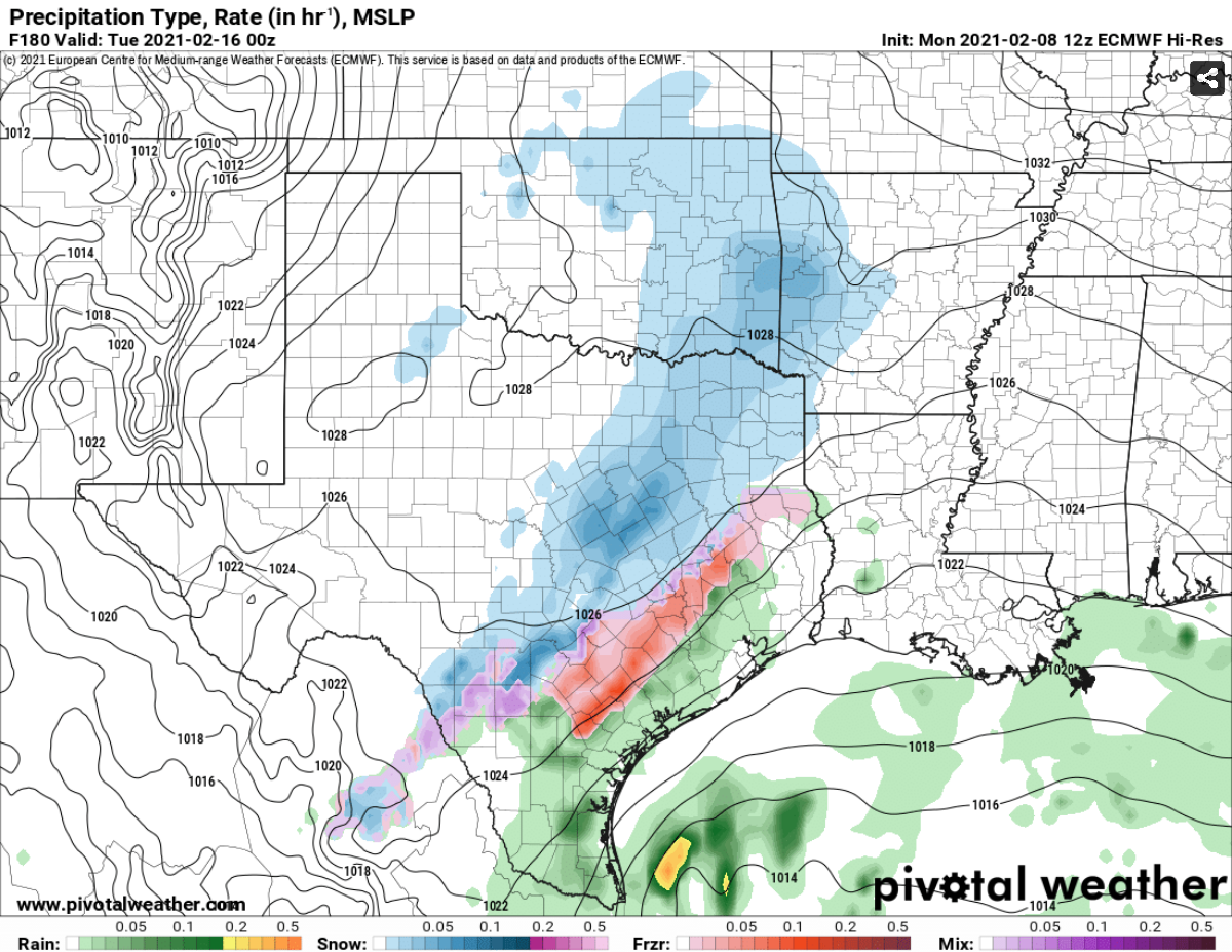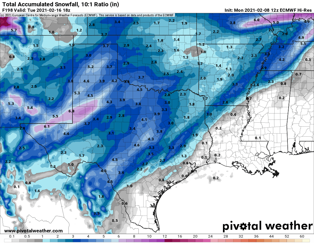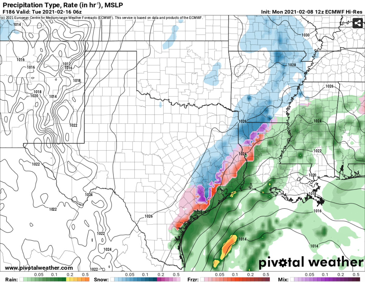 Yep, EURO capitulates for now on prolonged arctic cold. Snow/ice line around Highway Lucy.Kingwood36 wrote: ↑Mon Feb 08, 2021 12:52 pm 12z euro just joined the gfs and Canadian ..the cold is coming this weekend