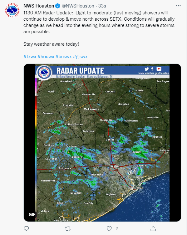 There's a lot of thick clouds here in CLL as well. Don't see or can't see much shear up there. We might be able to get to nightfall without a supercell. We'll see. Looks more like a late winter than severe season event. But that's now. Things could change for the worse.