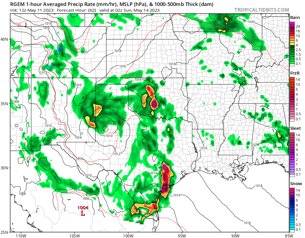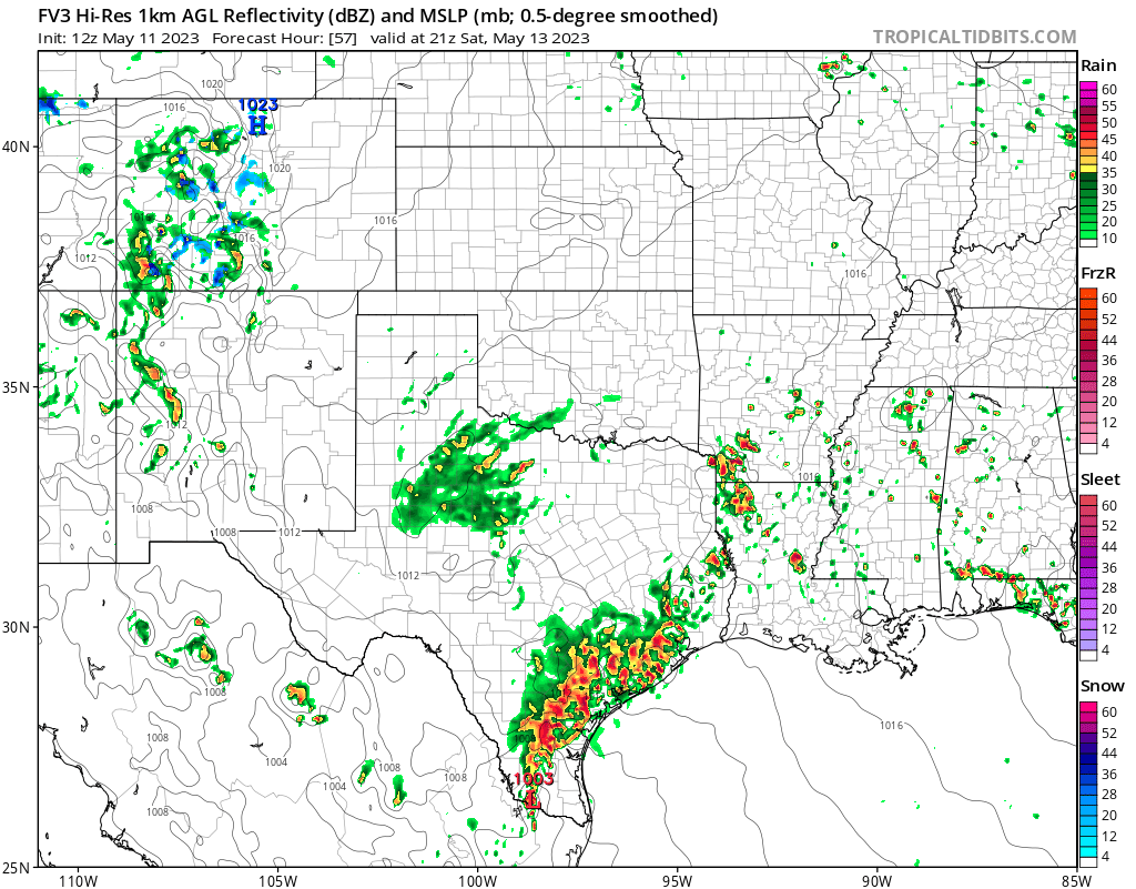don wrote: Thu May 11, 2023 1:23 pm Like Jeff mentioned we need to keep an eye on Saturday (especially areas west of I-45). Some models are showing the potential for a slow moving MCS to maintain it's strength longer than currently anticipated.Not expecting anything "crazy" at the moment but something to watch since grounds are saturated.