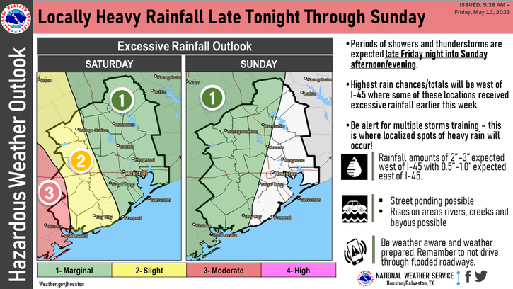 heavy rainfall expected over the weekend, there is an increased