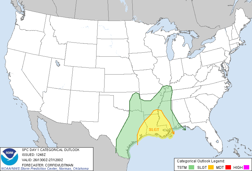 ...THERE IS A SLGT RISK OF SVR TSTMS ACROSS PORTIONS OF THE LWR MS