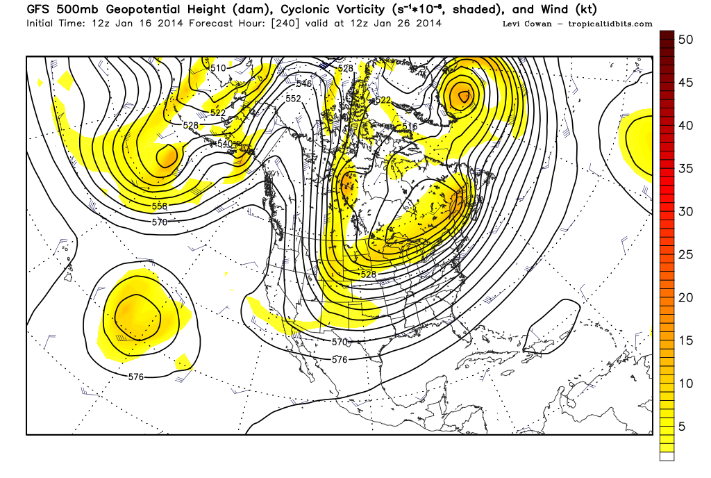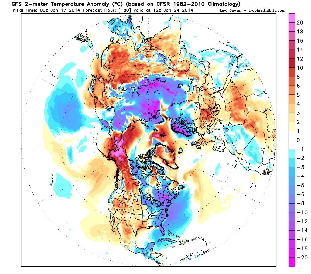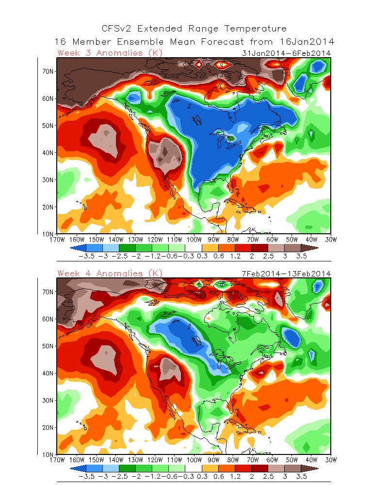 Right now the models are suggesting the 'coldest air' is to our East, cristina. What is noteworthy as we move just beyond the Day 10 time frame and start looking into February, the mean trough is shifting W and with each day the coldest anomalies as well as the 500mb pattern are suggesting our source Region of Western Canada will become much colder as the bitter cold air continues to build across the North Pole and head South. The fly in the ointment is the continued suggesting of strong tropical convection developing near and E of the dateline in the Pacific Ocean. That suggests everything shifts into the Central United States and into our Region.