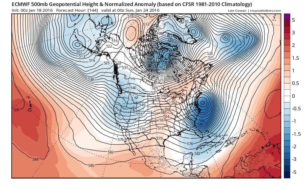 As of today the Arctic Oscillation has reached near -6 and has been in a negative phase the longest since December 2013. The Pacific North American (PNA) continues to hover near the +2 Range and has delivered the coldest air of the season to the Northern Plains and Upper Mid West where temperatures are near 0F and windchill values are running -20F to-30F. Once Hurricane Alex that brushed the Azores before transitioning to Extra Tropical has turned East and phased with another Extra Tropical Low over the Canadian Maritimes.