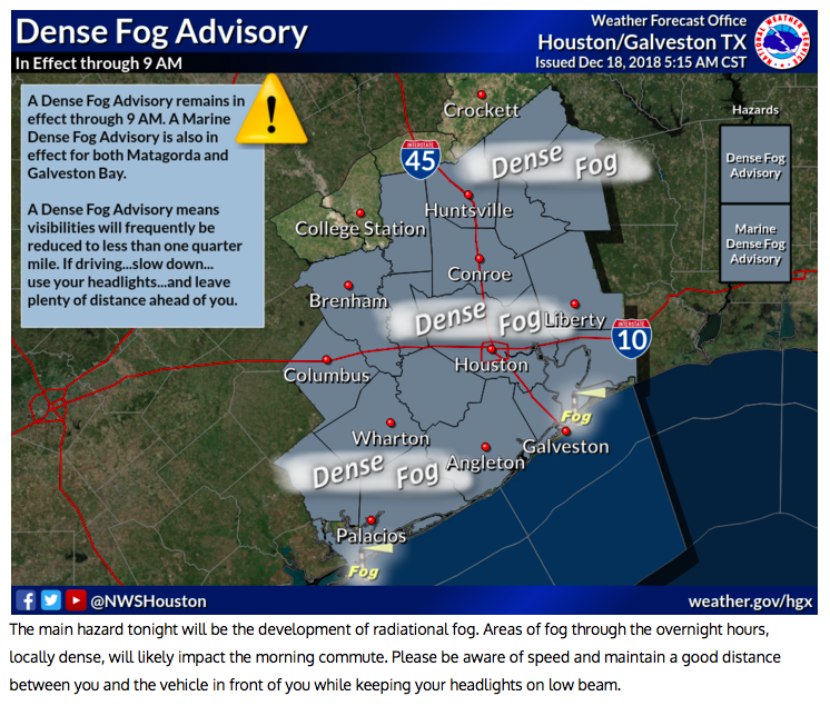 The fog is extremely dense this morning. I see Crosby ISD has delayed the start of school for students this morning by one hour. Drive carefully!