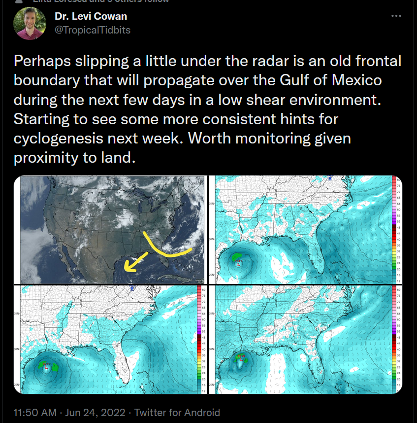 Gimme all of this right here.Stratton20 wrote: ↑Fri Jun 24, 2022 5:35 pm 18z GFS still develops a weak depression/ storm as it moves west towards matagorda bay
