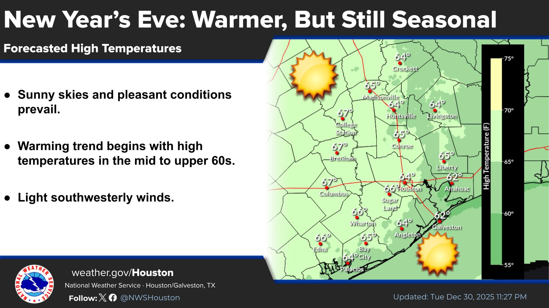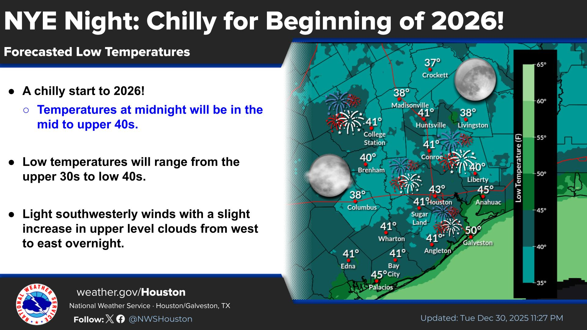 Same here. It doesn't look like the DP will clear 60°F in CLL. So, I'll allow it.MontgomeryCoWx wrote: ↑Tue Dec 30, 2025 6:21 pmI only see one day in the 80s for me. Friday.txsnowmaker wrote: ↑Tue Dec 30, 2025 4:31 pm Channel 13 forecasting multiple days in the 80s next week, including 81 degrees here for Jan. 9, which probably means 83-84 degrees in the city. This is getting to be beyond ridiculous.