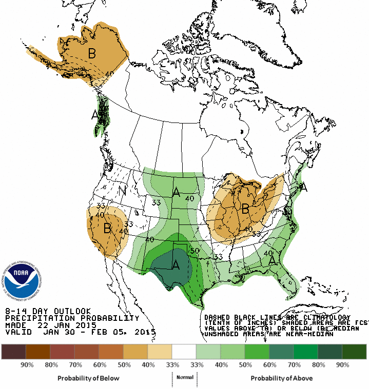 The Updated Climate Prediction Center Day 11+ Analogs as well as temperature and rainfall projections continue to advertise a fairly robust cooling trend as we end January and begin February. I was speaking to Mario Gomez a bit ago and he also mentioned some concern about the polar vortex dropping into SE Canada and some impressive temperature departs across the Plains in the longer range. Something to monitor as we end the month of January and begin our climatologically peak period for Winter Weather events across Texas. It appears that the sub tropical jet will remain rather noisy with disturbances riding NE across Mexico and Texas after the 'colder' air arrives. We will see.