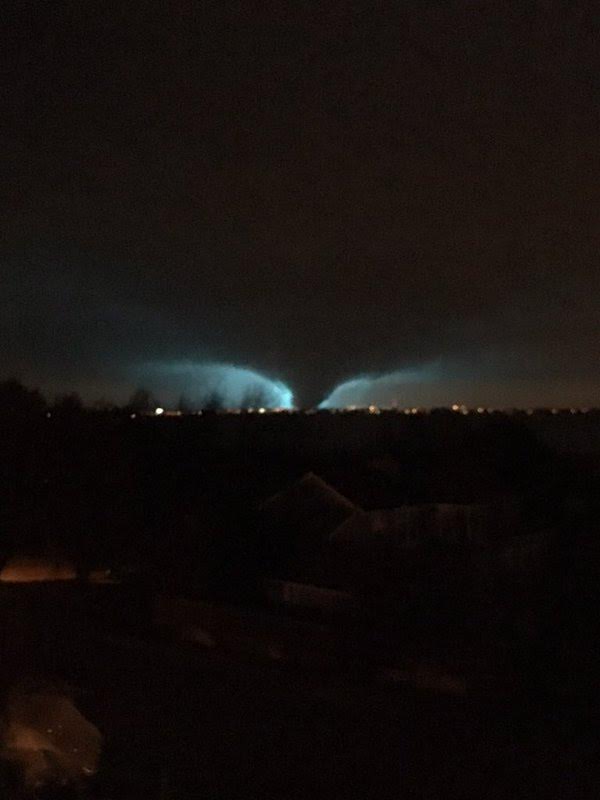 From Rockwall…looking west toward Rowlett (blue flash is debris striking power lines)