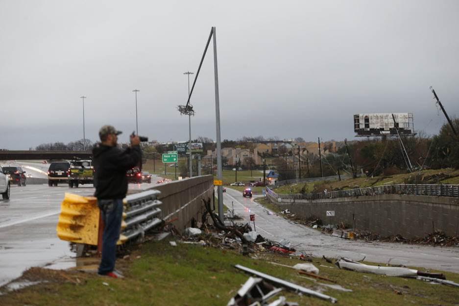 I-30 at George Bush Turnpike (several vehicles were rolled and carried by the tornado)