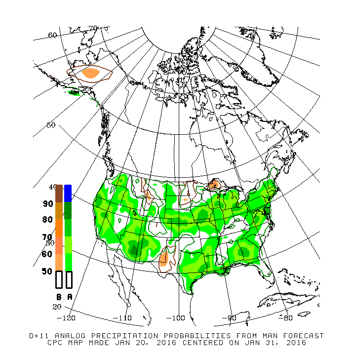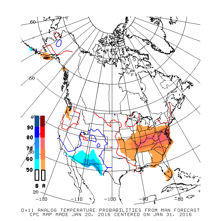 Climate Prediction Center Super Ensemble Day 11+ Analogs centered on January 31st: