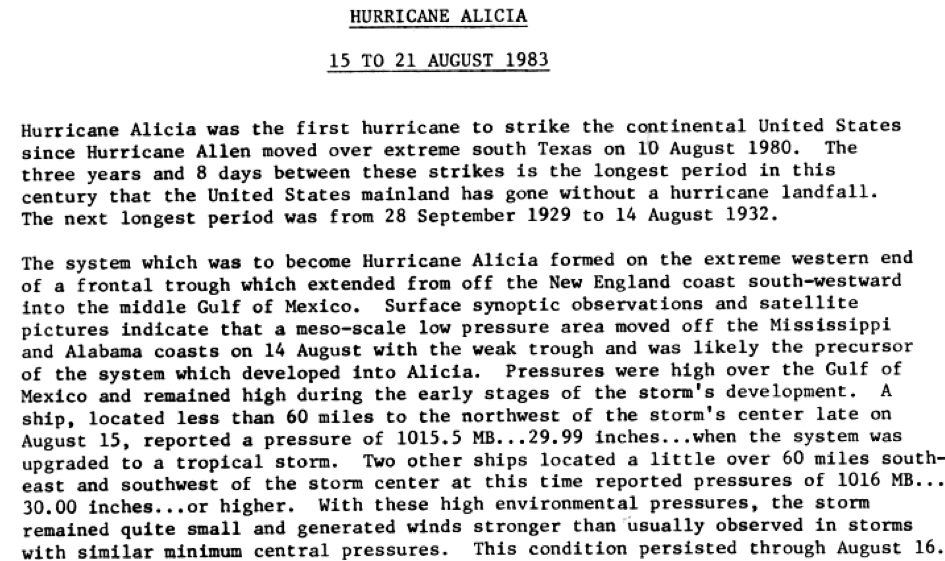 Alicia was also my first hurricane experience. Interesting that it formed from a low just off the Miss. coast!