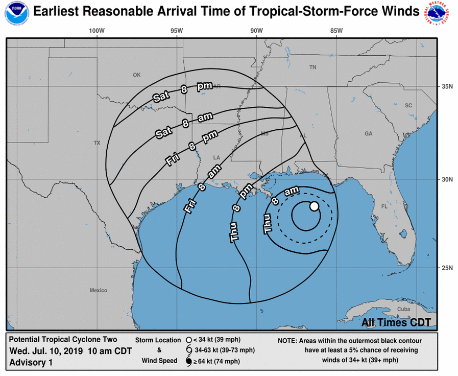 First cone issued from the NHC on 'Potential Tropical Cyclone Two" along with advisory -