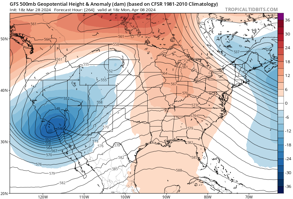 FYI It's far out but I'm watching the 2nd week of April for the possibility of a significant cutoff low in the southwest/southern plains.Combined with an active subtropical jet, such a setup could lead to a multi day severe weather & heavy rain threat in the plains.Still far out so nothing to worry about at the moment though,just something to watch.