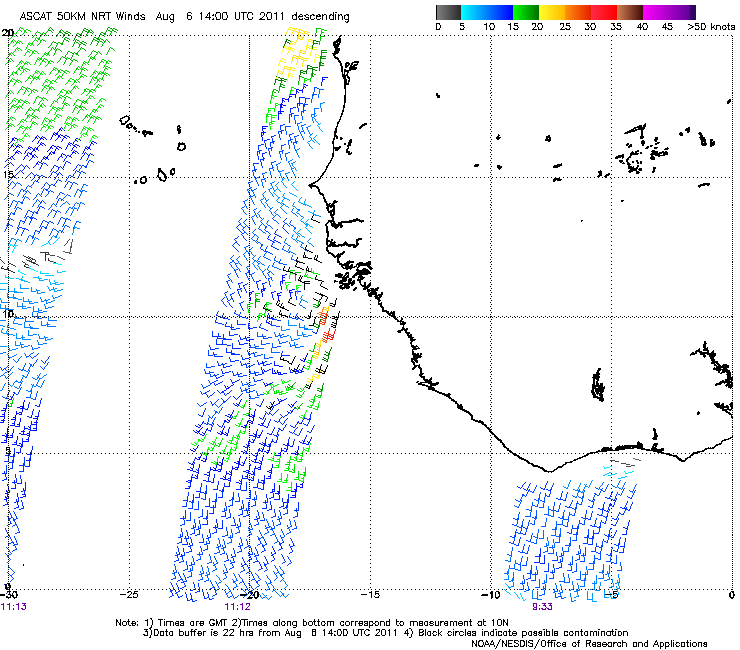 09Z ASCAT suggests rotation just of the African Coast. I will not be surprised to see some attention from the NHC if convection can continue today...