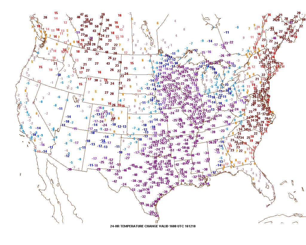 You know it is a true Texas Blue Norther when across the Lone Star State there are several 50+ temperature departures the past 24 hours.